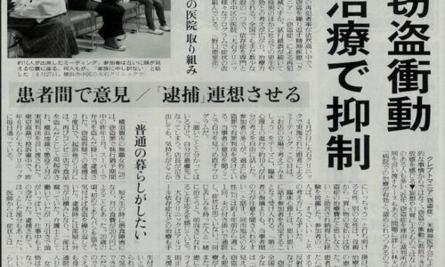 2018年6月10日(日)朝日新聞にて当院院長やスタッフ、患者様がインタビューを受けたクレプトマニアに関する記事が掲載されています。