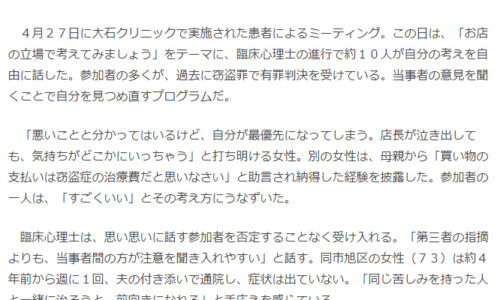 当院の大石雅之院長がインタビューをお受けした読売新聞のクレプトマニアに関する記事がインターネット上でも閲覧して頂けます。